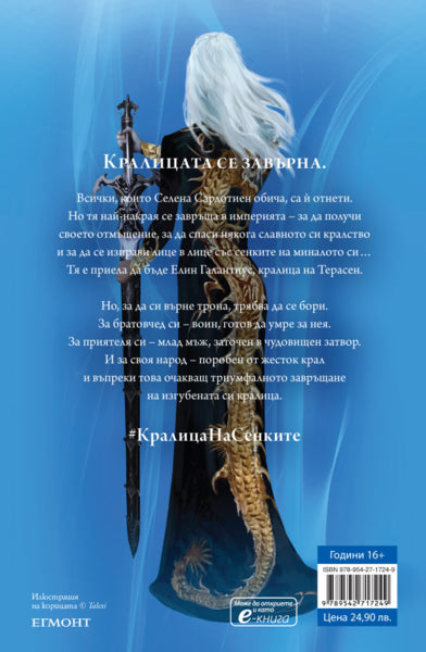 Селена Сардотиен прие истинската си идентичност като Елин Галантиус, кралицата на Терасен. Но преди да се възкачи на трона си, трябва да се бори. Ще се бори за братовчед си – воин, готов да умре за нея. Ще се бори за приятеля си – млад мъж, заточен в чудовищен затвор. И ще се бори за народа си – поробен от жесток крал и трепетно очакващ завръщането на изгубената си кралица. Всички, които Елин някога е обичала, са ѝ били отнети. Всичко, което ѝ е скъпо, е в смъртна опасност. Но тя носи сърце на кралица и то бие с ритъма на отмъщението.