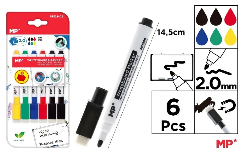 Маркер MP за бяла дъска BULLET TIP, комплет 6 бр.