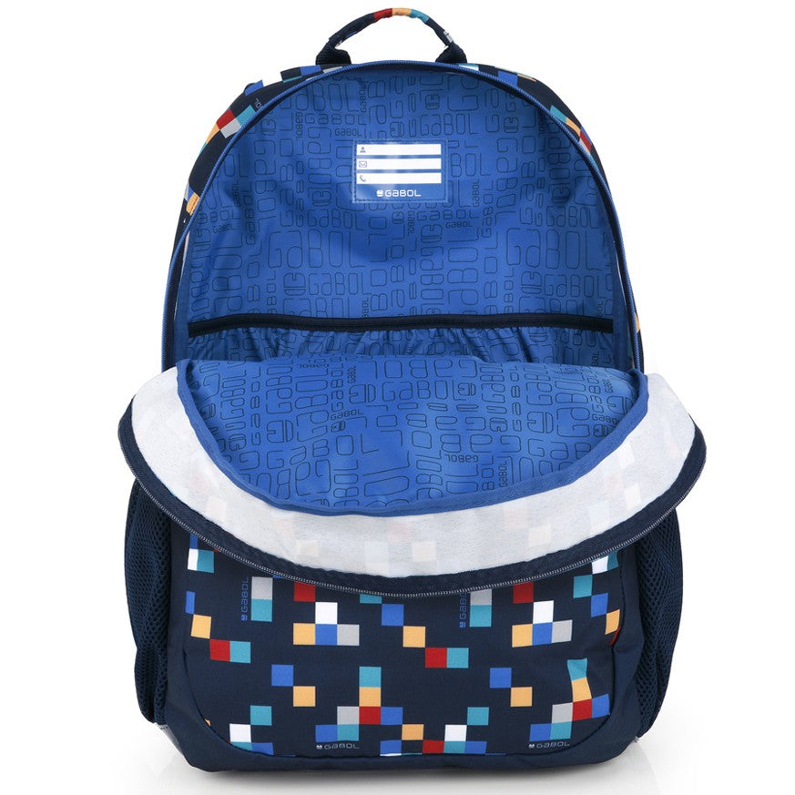 Разполага с цели два високи предни джоба, вътрешна преграда за лаптоп в основното отделение и два странични разтегливи джоба.